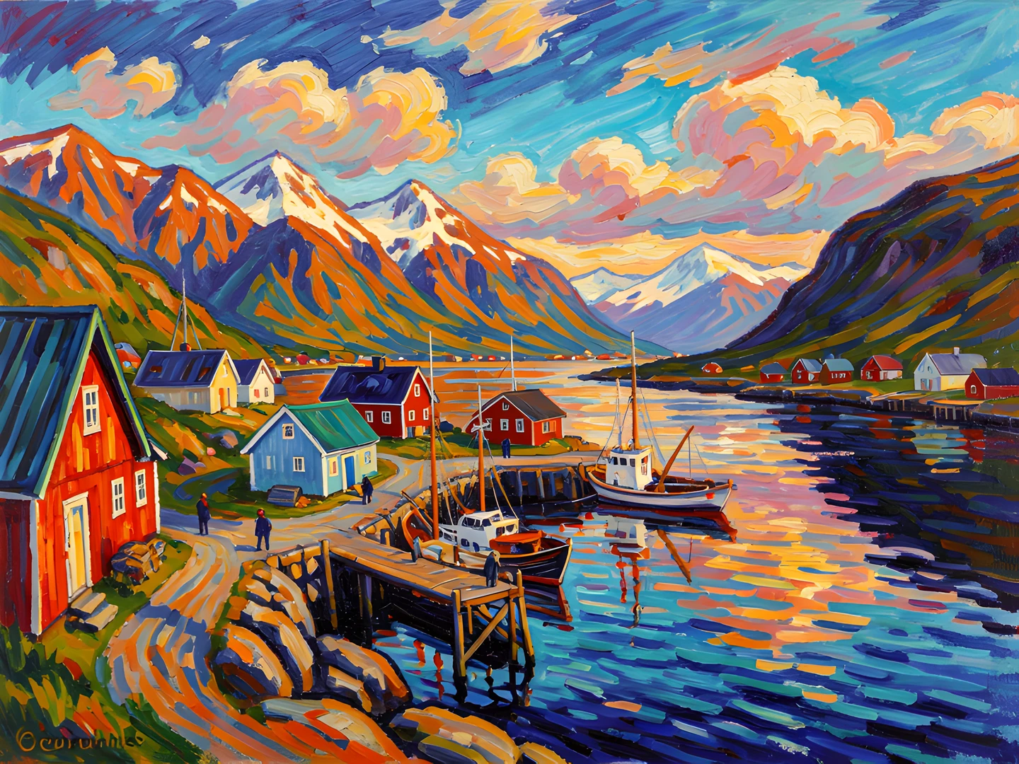 brushstrokes colorful colors fishing impressionist j lofoten m post style thick turner village w
