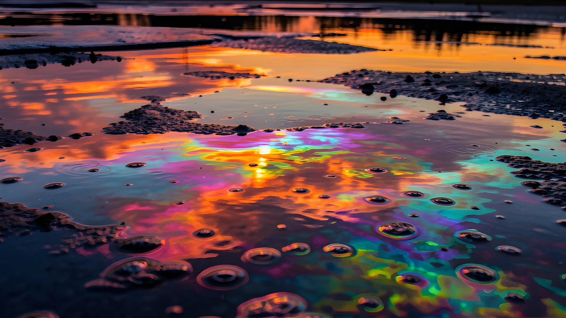 colorful dappled impressionist iridescent light oil slick sunset