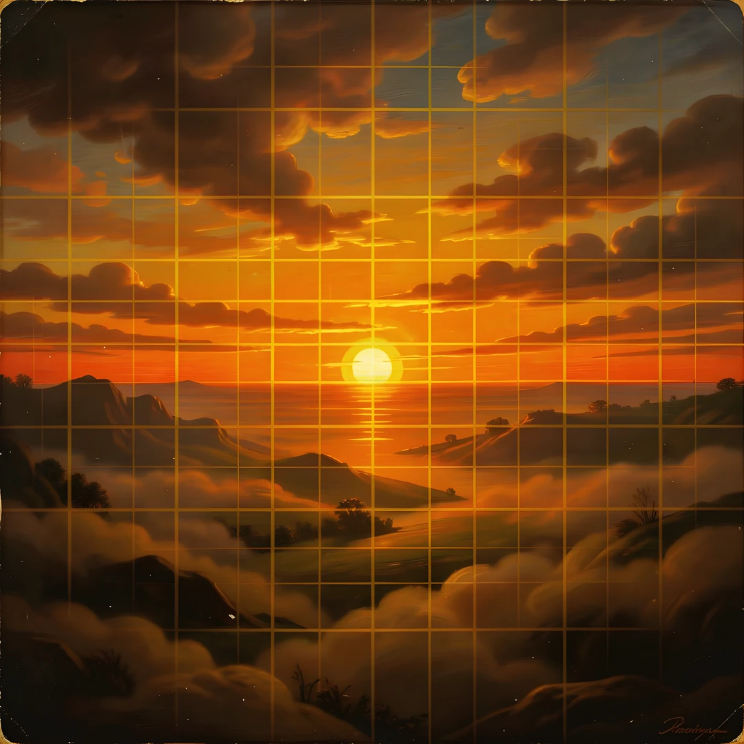 80s caravaggio grid mist retro sfumato style sunset technique