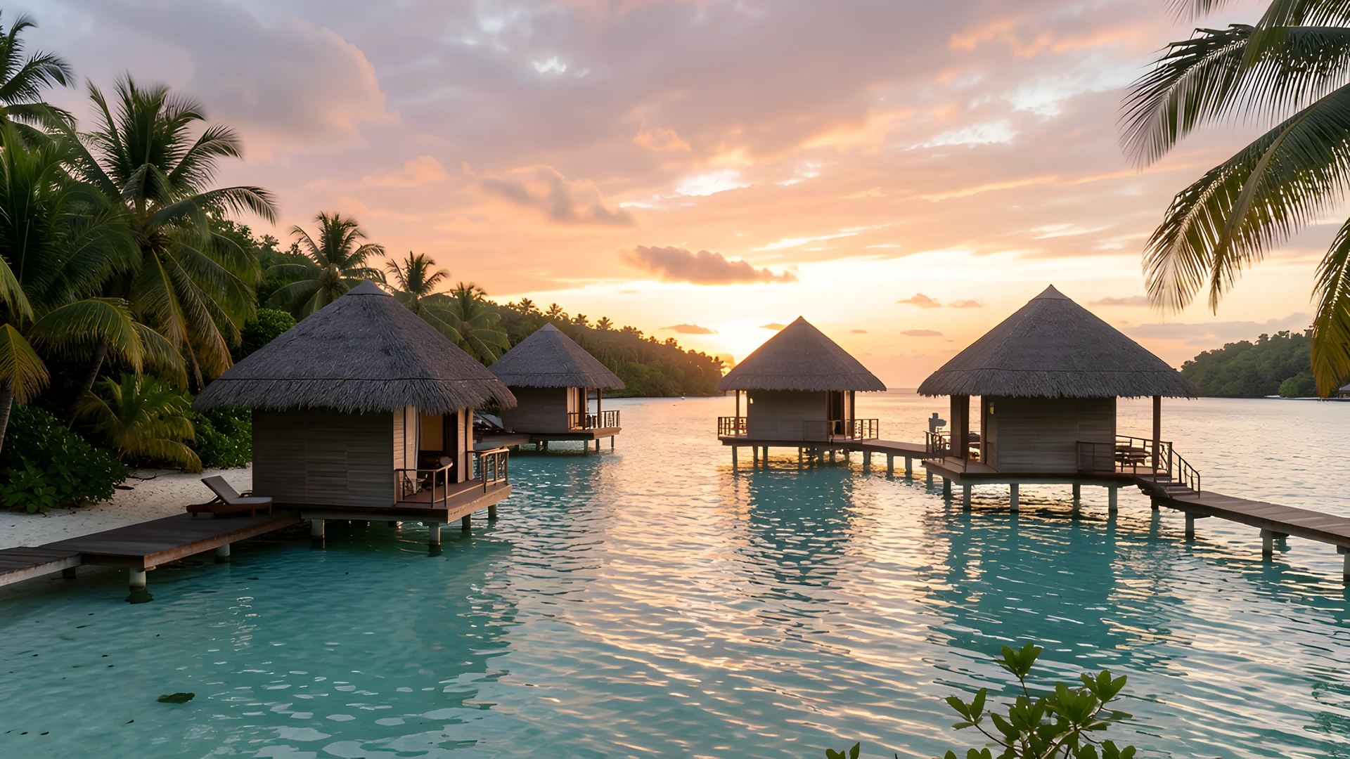 atmosphere bungalows domestic lake overwater quiet sunset tropical