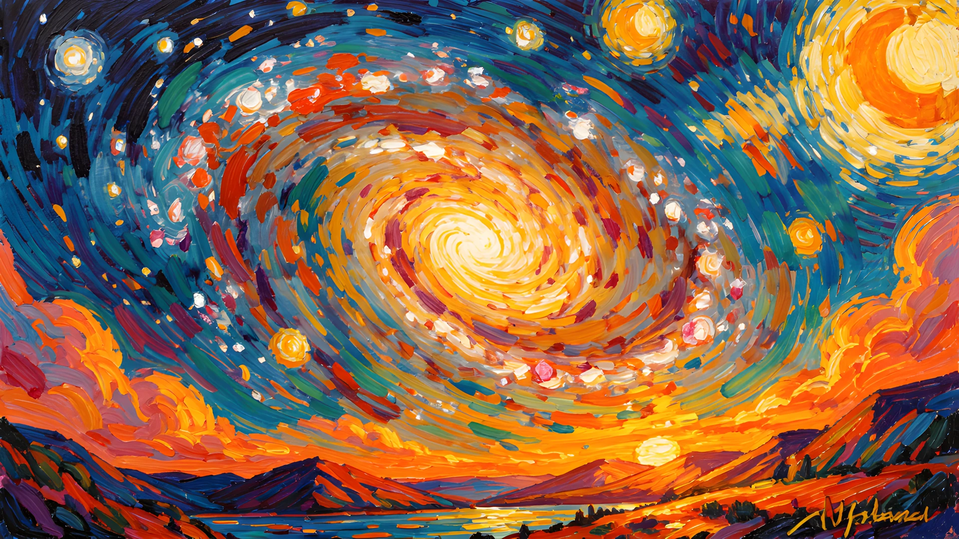 brushstrokes colorful colors galaxy impressionist post spiral sunset thick