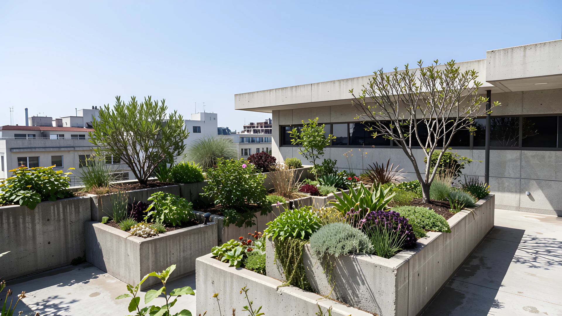 brutalist garden noon rooftop