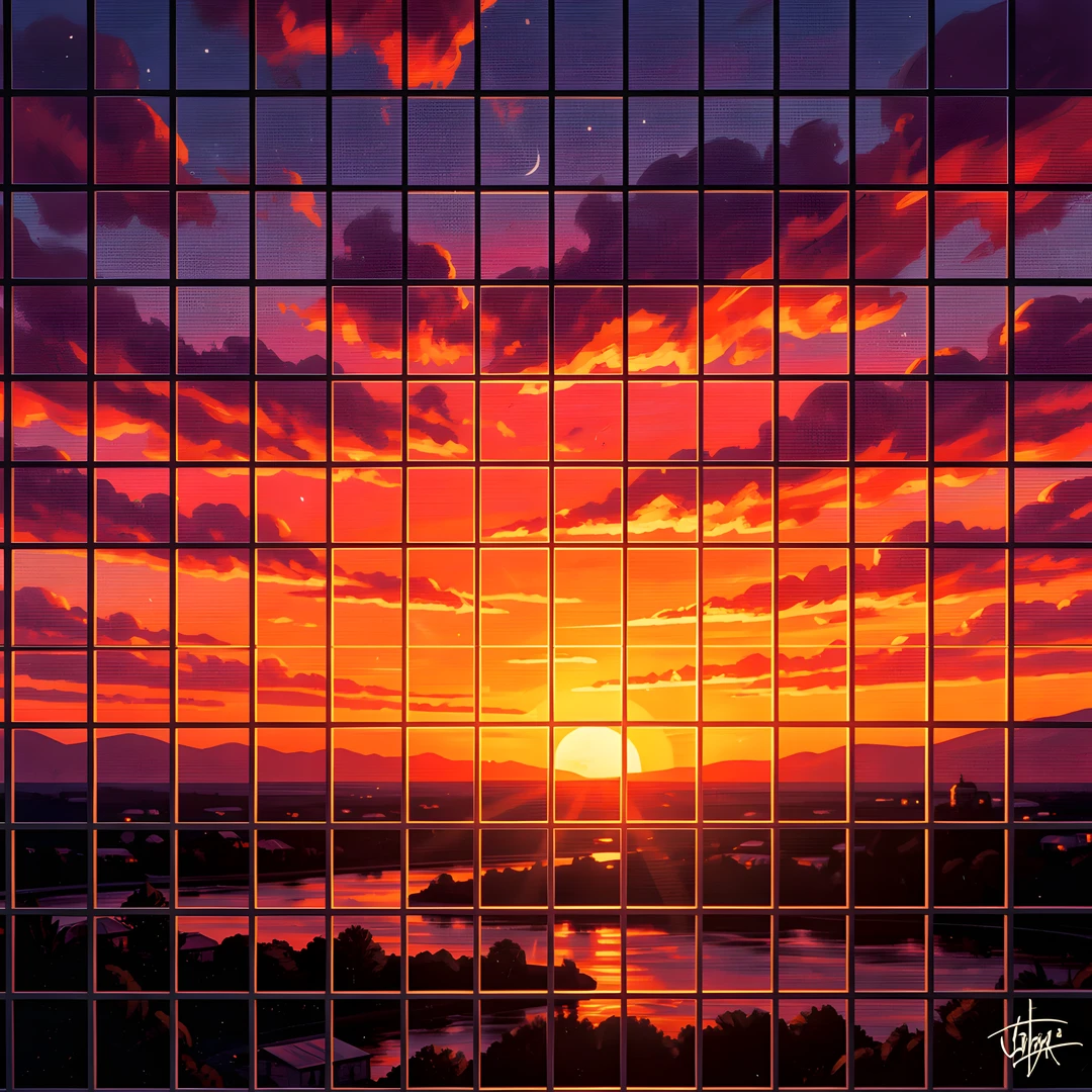 80s dappled grid impressionist light night retro sunset
