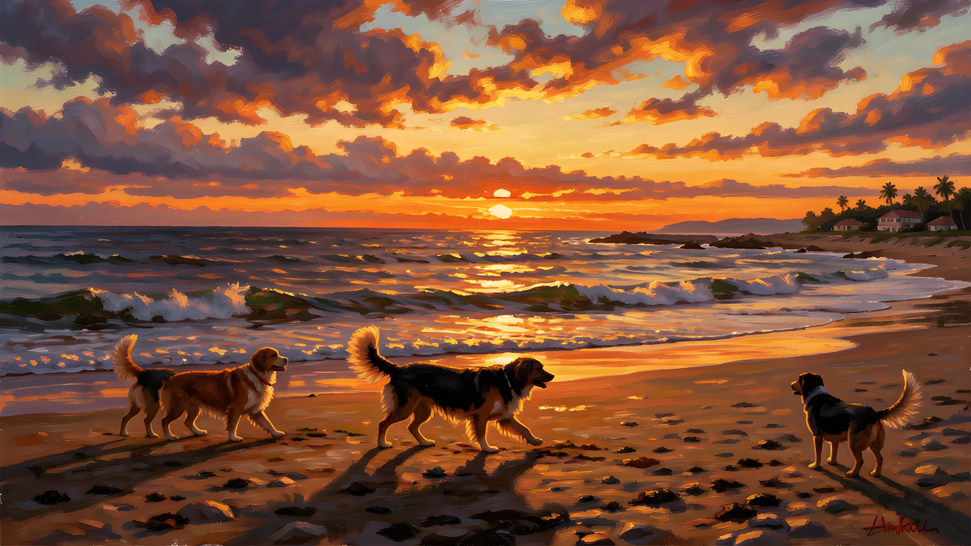 chiaroscuro coast dappled dog impressionist light sunset