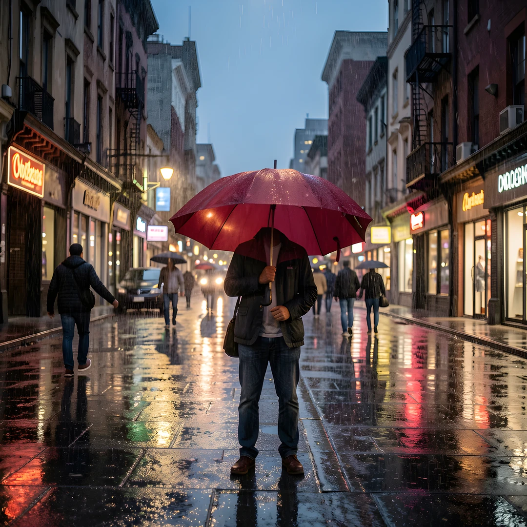 night rain street sunset umbrella