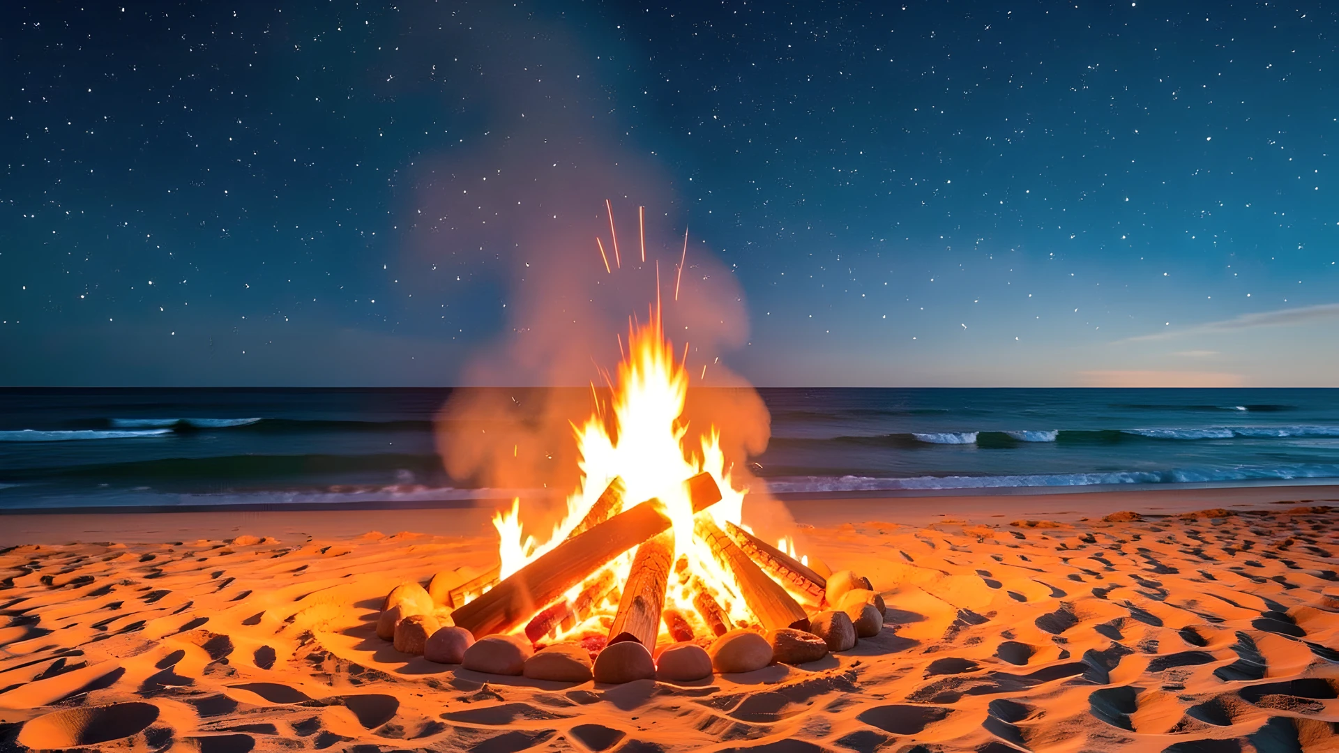 bonfire coast night sfumato stars sun technique weather