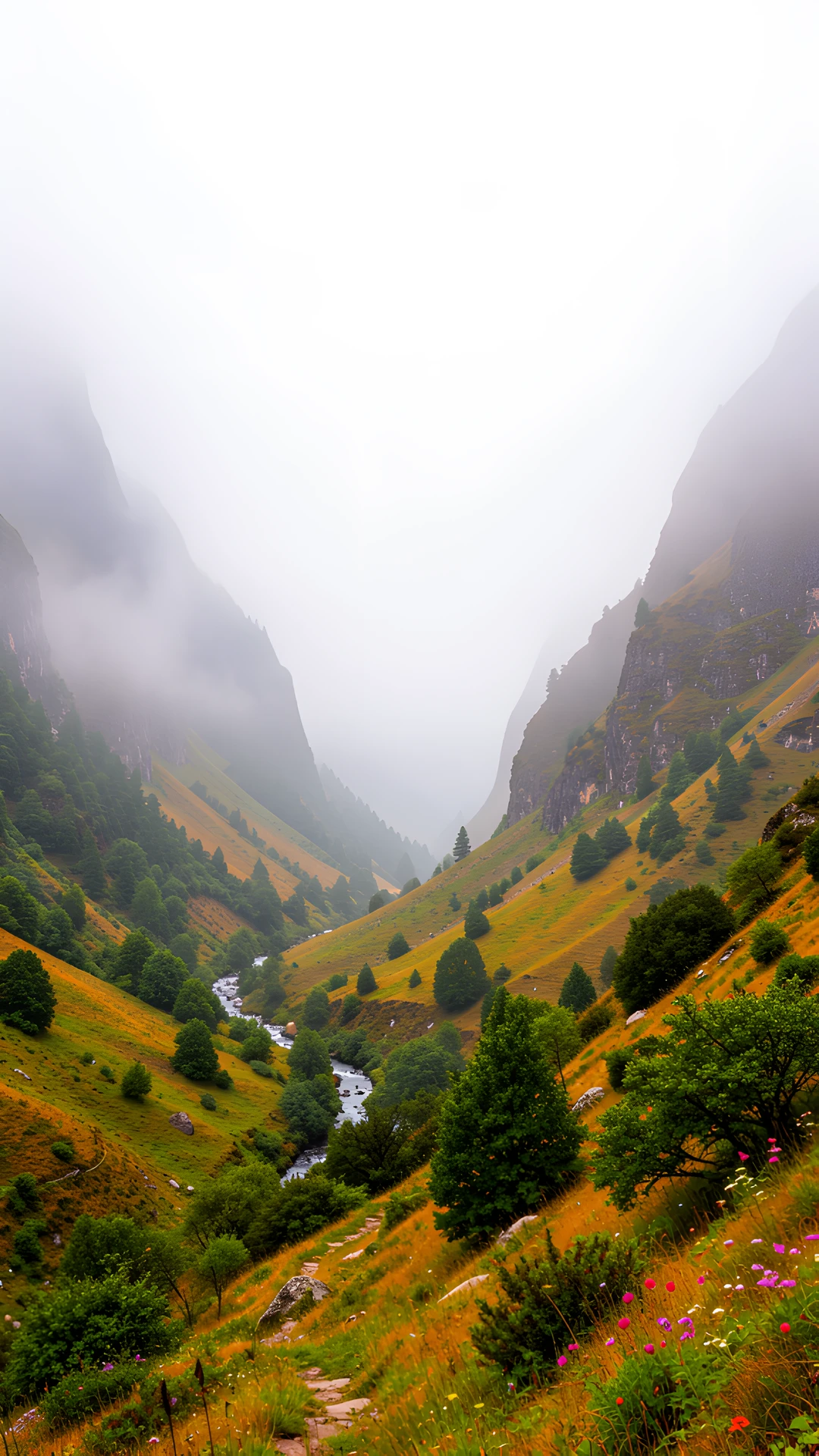 colorful colors diffused light mist mountain pass soft