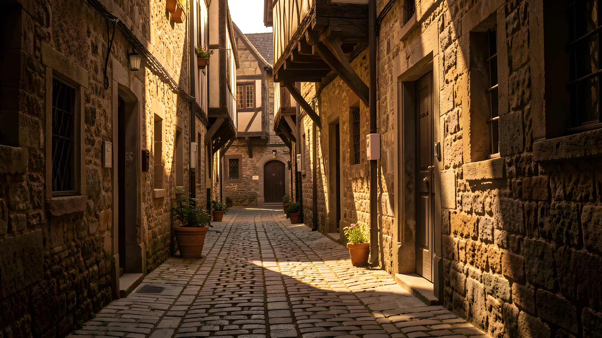 alley deep european golden highlight historic noon shadows