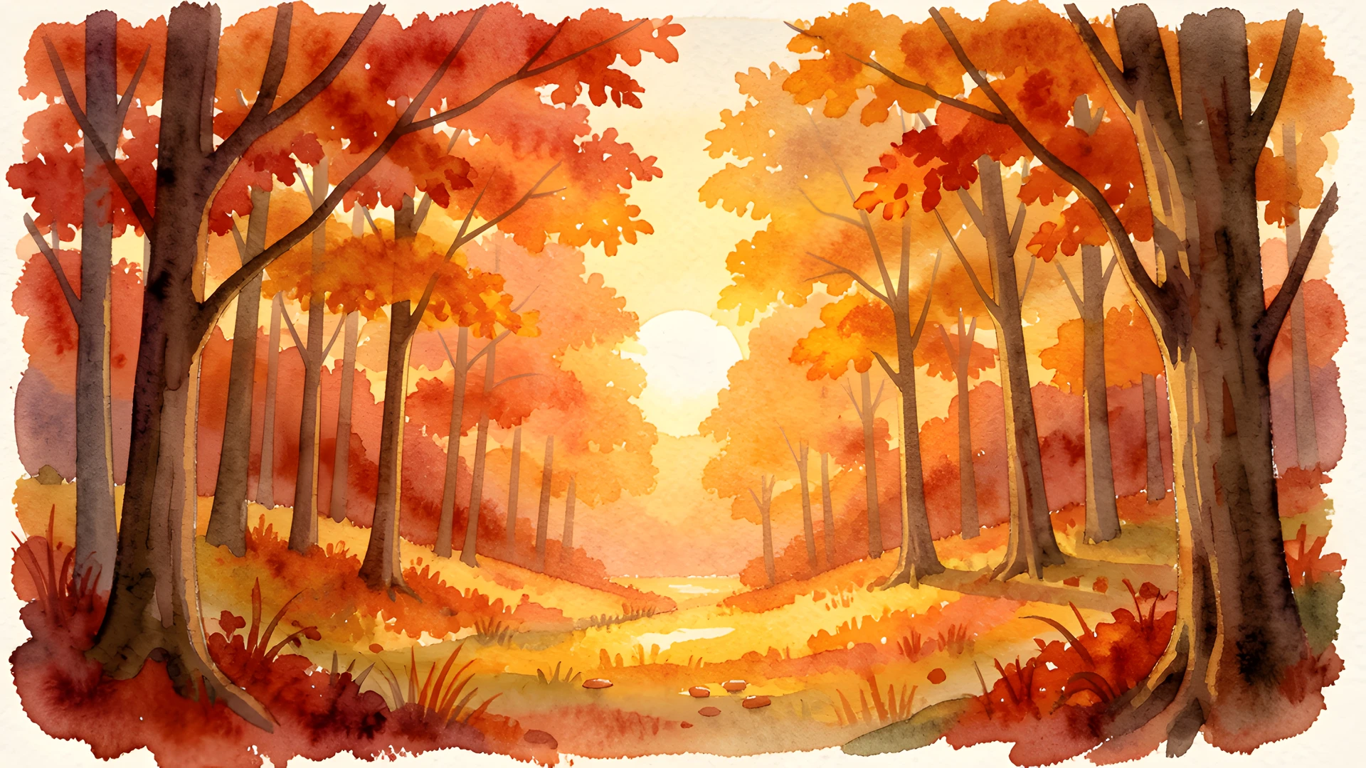 autumn forest sunrise watercolor
