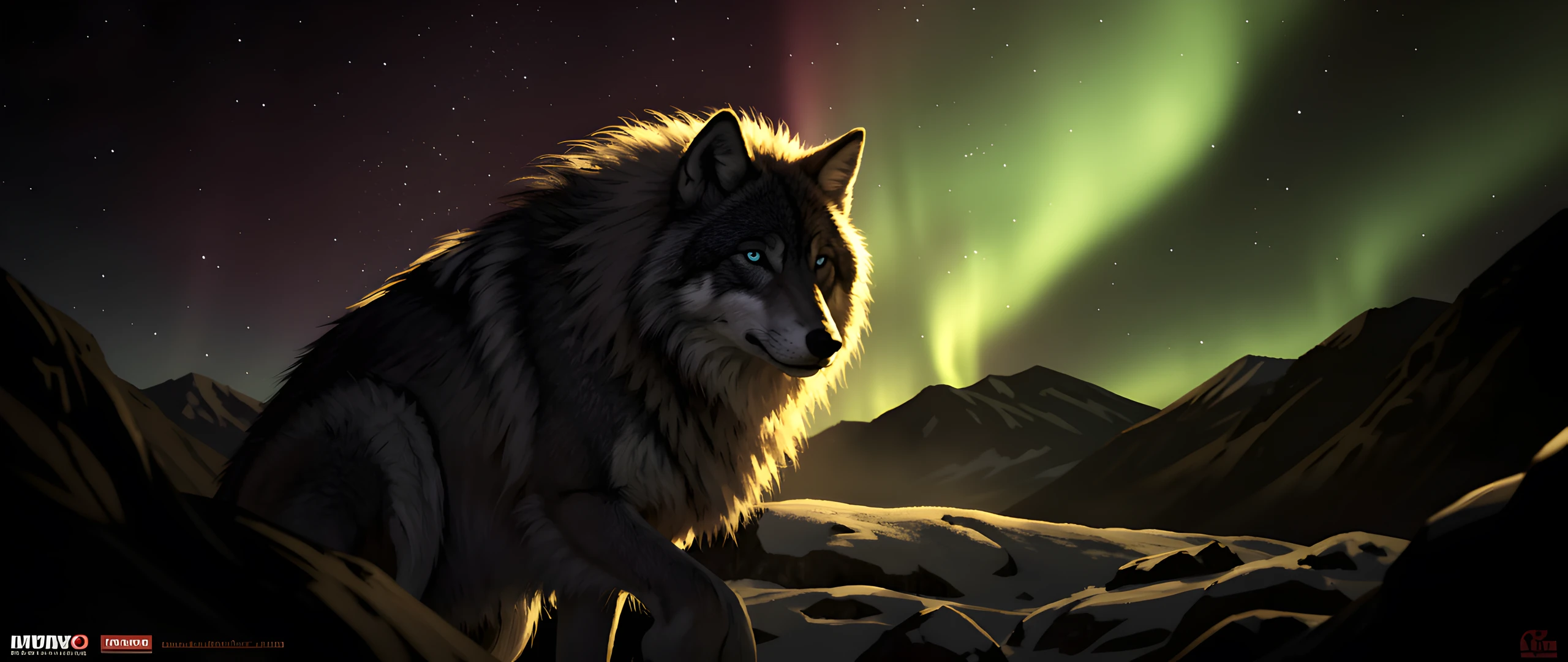 aurora chiaroscuro deep golden highlight shadows spirit wolf