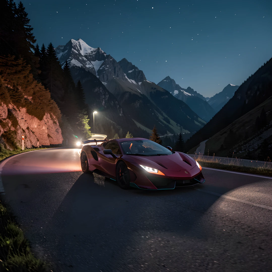 car mountain night road sports