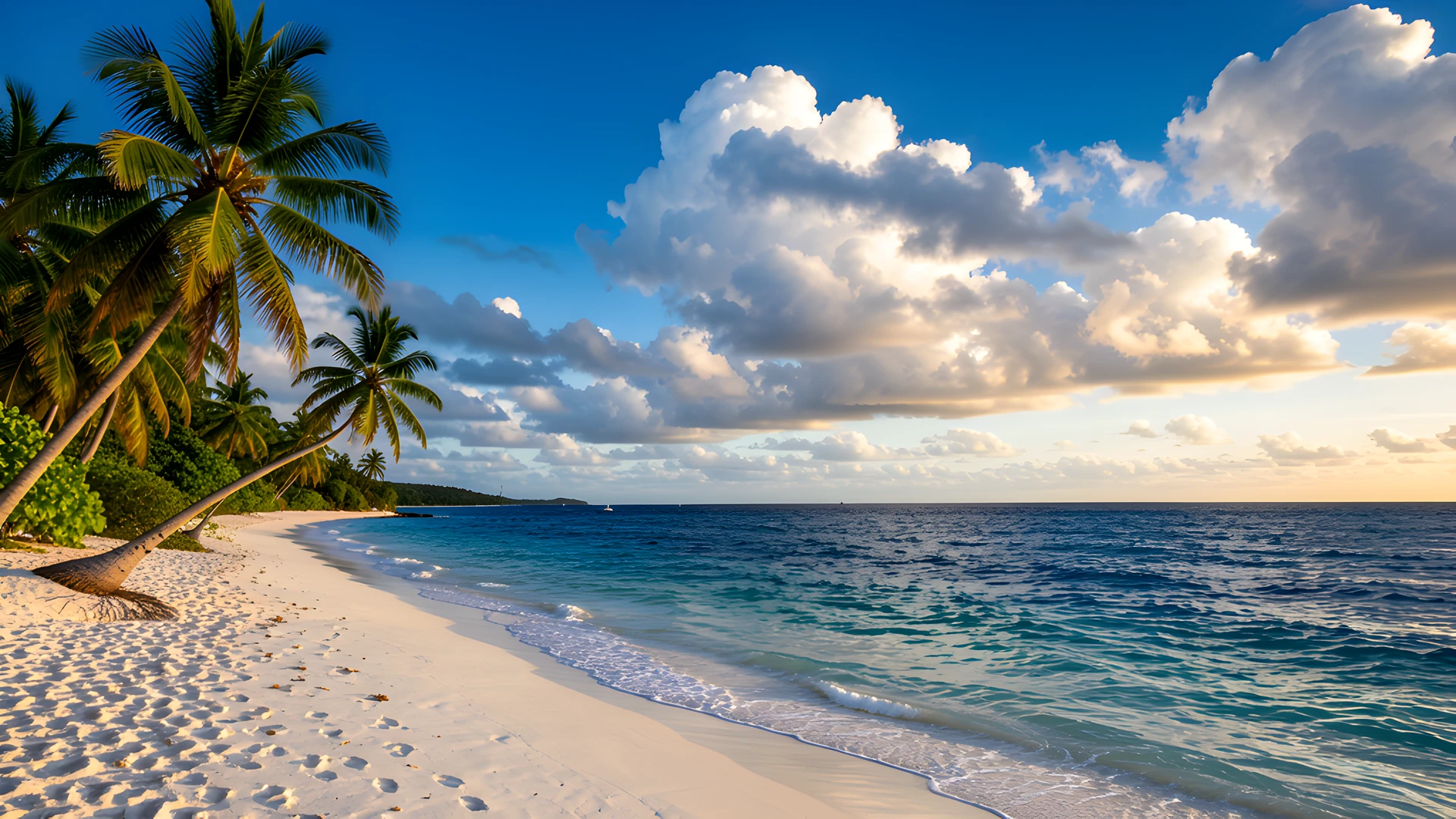 blue clouds coast coconut deep forest ocean sky sunshine white