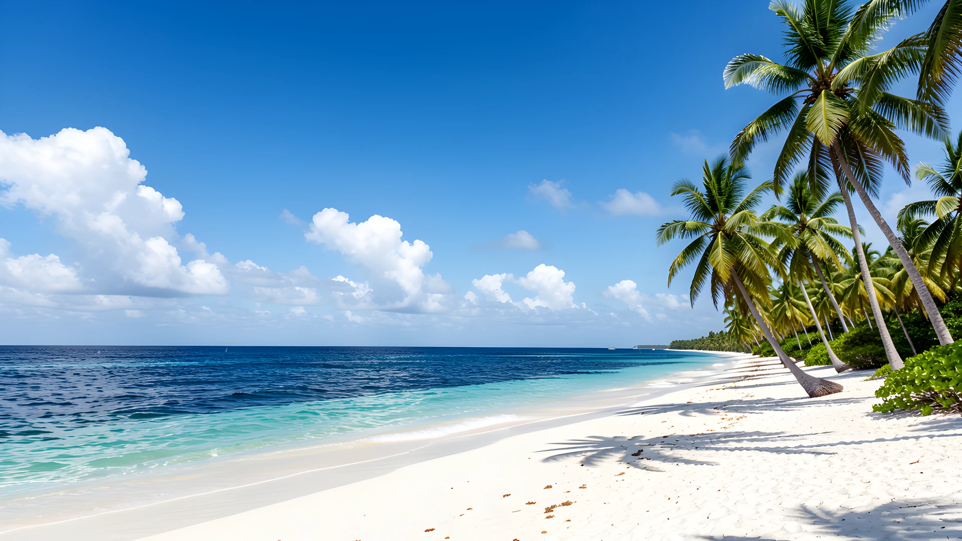 blue clouds coast coconut deep forest ocean sky sunshine white